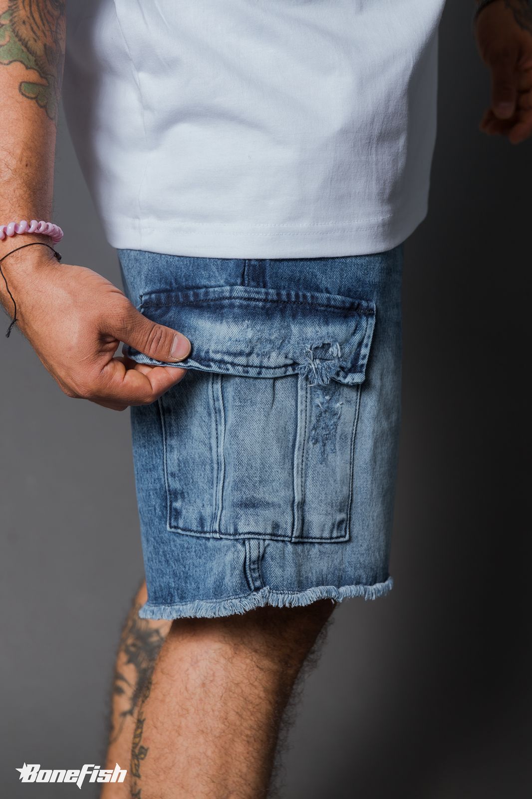BERMUDA MEZCLILLA CARGO BLEANCH
