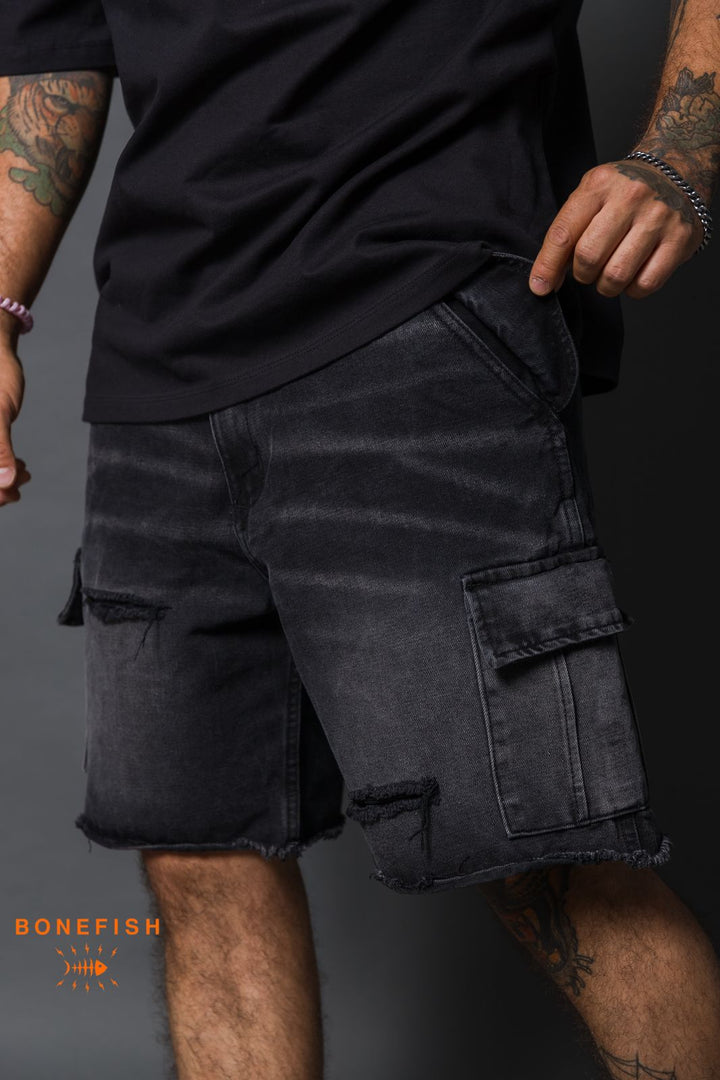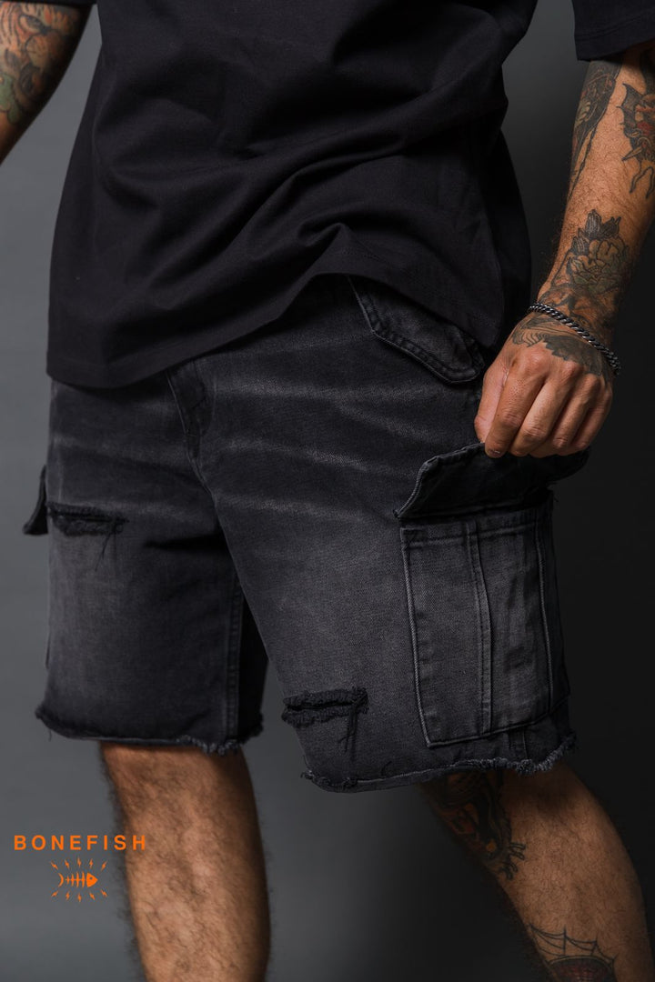 BERMUDA MEZCLILLA CARGO NEGRA
